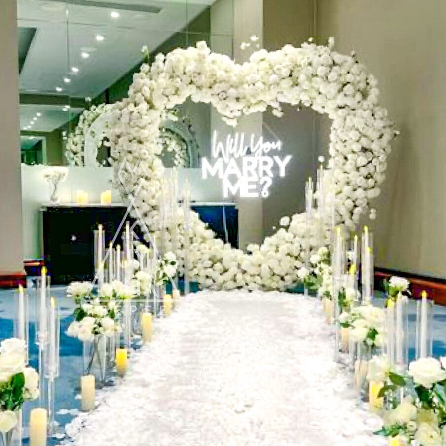 Estructura corazón de metal cenefa floral 600cm para todo el contorno del corazón letrero luz neón decoración abundante en pétalos de rosa alfombra